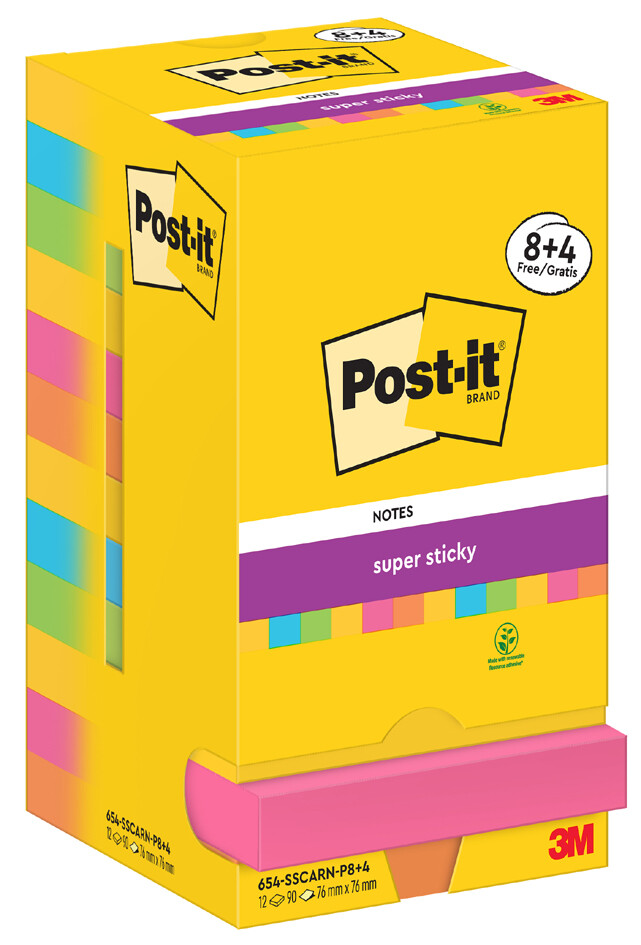 Post-it super sticky notes Haftnotizen, 76 x 76 mm, 8+4